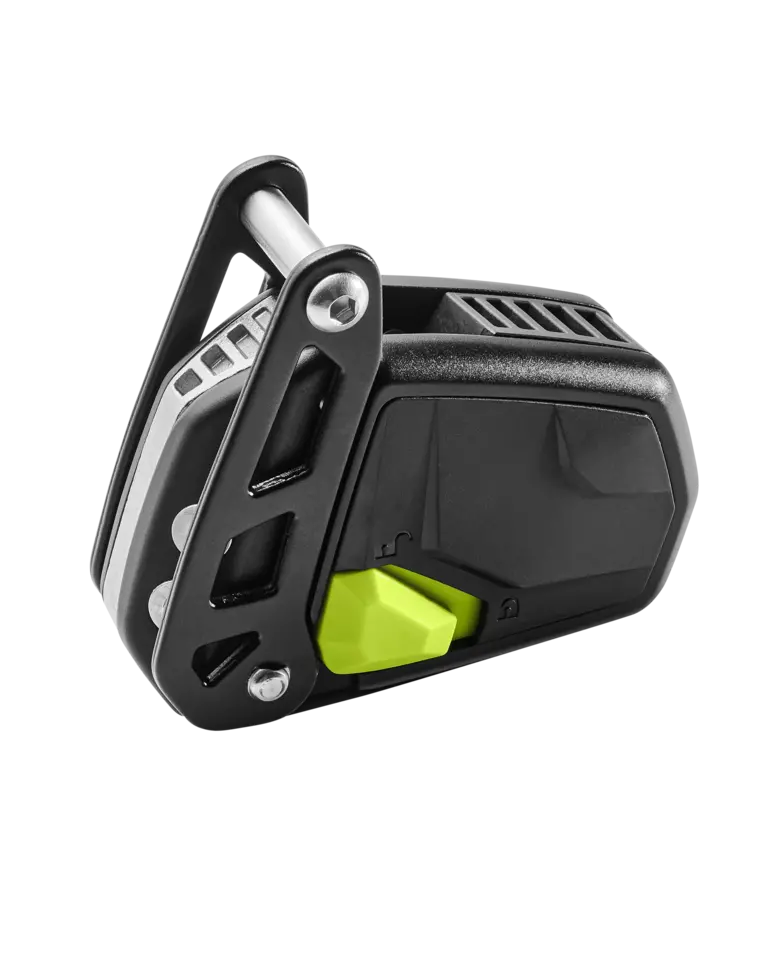 جداسازی مکانیزم مسدود و فعالکننده وابسته به سرعت آن قابلیت اطمینان و ایمنی دستگاه را بهبود میبخشد.این دستگاه سایش طناب را کاهش میدهد، از پارگی طناب جلوگیری میکند و تضمین میکند که میتوان بدون تخلیه کامل بار، قفل ابزار را آزاد کرد. این امر با آزاد شدن دندانه بادامک در یک جهت حاصل میشود. در صورت نیاز، بادامک ابزار را میتوان با استفاده از یک عملکرد قفل کاربردی فعال کرد.